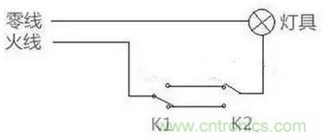 雙控開關有很多種接線方式,如果電工采用了下面這種接線方法,就會關燈后發(fā)微光。