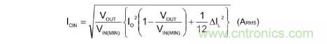 流向輸入電容器的紋波電流實效值ICIN用下列公式表示。