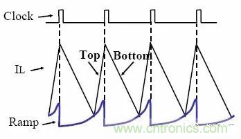 當(dāng)輸入電壓比輸出電壓高△V時(shí),開(kāi)關(guān)管D保持常開(kāi),開(kāi)關(guān)管C保持常關(guān),開(kāi)關(guān)管A和B工作于同步的Buck模式。其工作原理與一般的同步的Buck工作原理完全相同,控制的方法為谷點(diǎn)電流模式,如圖2所示,其中D為占空比。