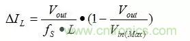 式中:△IL為電感電流的紋波,fs為開(kāi)關(guān)頻率。