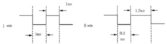 每個(gè)Byte的格式如圖3,由10bits組成,第一個(gè)bit是STARTbit固定為HI,最后一個(gè)bit是Stopbit固定為LOW,第2-9bit實(shí)際發(fā)送的數(shù)據(jù)(最先收到的bit為LSB),由于是負(fù)邏輯數(shù)據(jù)需要反相處理(LOW=1、HI=0).