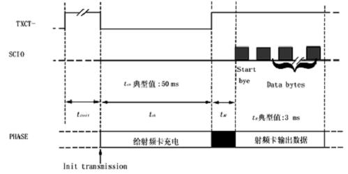 以下給出基站讀取數(shù)據(jù)的時(shí)序(如圖2),由射頻卡發(fā)出的數(shù)據(jù)采用FSK調(diào)制。