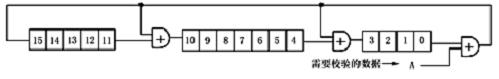 本文采用的CRC-CCITT,能檢測出所有的雙錯(cuò)、奇數(shù)位錯(cuò)、突發(fā)長度不大于16的突發(fā)錯(cuò)以及99.997%的突發(fā)長度為17的突發(fā)錯(cuò)和99.998%的突發(fā)長度大于或等于18的突發(fā)錯(cuò)。CRC校驗(yàn)碼的數(shù)學(xué)原理本文在此不作介紹。本文在這里說明怎樣實(shí)現(xiàn)CRC校驗(yàn)。CRC校驗(yàn)碼的運(yùn)算可以用移位寄存器和半加器來實(shí)現(xiàn)。如附圖8所示。