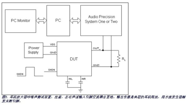 Maxim采用了Audio Precision的系統(tǒng)1和系統(tǒng)2 (推薦)音頻分析儀測量咔嗒聲(圖3),也可以采用其它廠商類似測試設備。所推薦的指標KCP能夠客觀衡量音頻放大器的咔嗒聲。