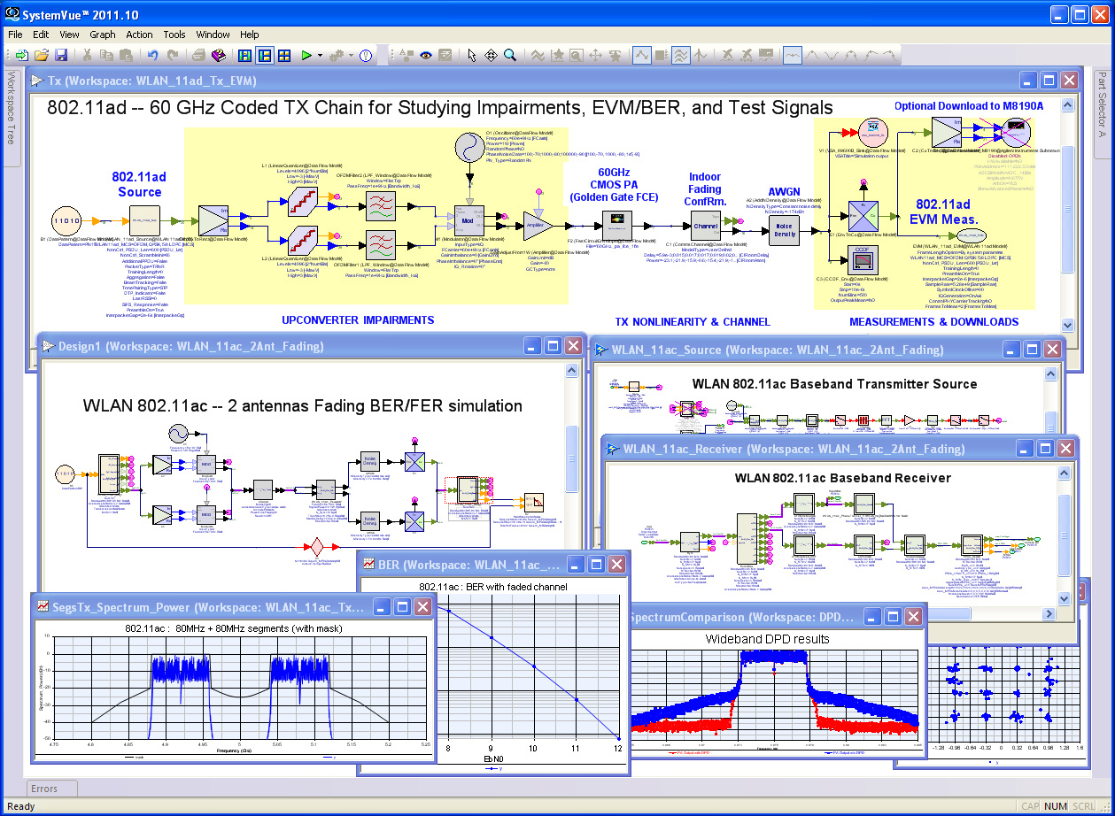 利用這個新程序庫,系統架構師現在可以查看 802.11ac 算法和模型的系統級效率,信號質量的預失真、減損、干擾和衰落,以及比特誤碼率。