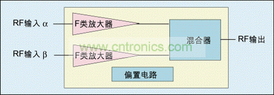 使用異相技術時,分放大器的選擇至關重要,F類放大器特別適合工作于此模式。F類放大器不是線性的,但是作為異相放大器系統中的分放大器它工作于固定振幅,其實這一點并不重要。F類放大器在二次諧波和三次諧波采用特殊的終結方法,使放大器晶體管在“開”時電壓最小,從而減小開關設備中的功率損耗。該類放大器的峰值輸出功率與漏電壓平方成正比,因此可用Vdd電源電壓來設定平均輸出功率,可將Vdd設定為對于任何平均輸出功率放大器均運行于可能達到的最大效率。