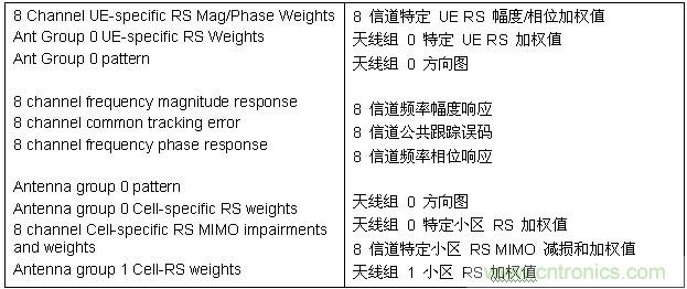 圖 9 中的表格顯示了對 8 個天線單元中的每 1 個進行測量所得到的特定 UE RS 加權值。加權值可以同時從幅度和相位方面進行測試,最多可細化到每個用戶發射相關的單個資源塊分配。測量應用軟件還可提供每個空間多路復用層的單獨特定用戶 RS 加權值跡線。小區 RS 映射提供了圖中的藍色曲線。