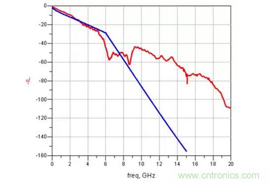去加重的頻響曲線如下圖紅色曲線,淺藍色為一根5GHz時衰減為10db傳輸線: