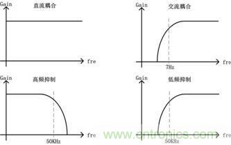 交流耦合:是高通濾波,截止頻率約7Hz;