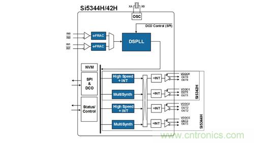 Silicon Labs新型Si534xH相干光時鐘可以為數據轉換器提供低抖動參考定時,可替代依賴于昂貴、大封裝尺寸的壓控SAW振蕩器(VCSO)的分立定時解決方案。與僅支持單一固定頻率的VCSO不同,新型Si534xH時鐘提供很寬的頻率范圍,支持頻率高達2.7GHz,且無需改變物料清單(BOM)元器件。