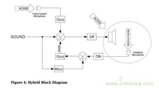 既然兩種方案各有利弊,那么把它們結合起來如何?這就是混合模式的有源噪聲消除,既使用前饋又使用反饋,系統設計得當的話可以揚長避短,即避免風噪又能抵消高頻噪聲。