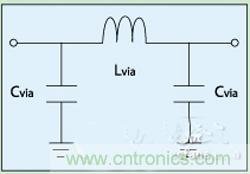 接地層確定后,將所有的信號地以最短的路徑連接到地層非常關鍵,通常用過孔將頂層的地線連接到地層,需要注意的是,過孔呈現為感性。圖3所示為過孔精確的電氣特性模型,其中Lvia為過孔電感,Cvia為過孔PCB焊盤的寄生電容。如果采用這里所討論的地線布局技術,可以忽略寄生電容。一個1.6mm深、孔徑為0.2mm的過孔具有大約0.75nH的電感,在2.5GHz/5.0GHz WLAN波段的等效電抗大約為12Ω/24Ω。因此,一個接地過孔并不能夠為RF信號提供真正的接地,對于高品質的電路板設計,應該在RF電路部分提供盡可能多的接地過孔,特別是對于通用的IC封裝中的裸露接地焊盤。不良的接地還會在接收前端或功率放大器部分產生有害的輻射,降低增益和噪聲系數指標。還需注意的是,接地焊盤的不良焊接會引發同樣的問題。除此之外,功率放大器的功耗也需要多個連接地層的過孔。