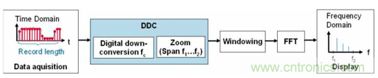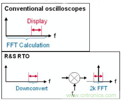 傳統的做法是,示波器把信號樣本采集下來,然后通過軟件算法來進行軟件運算,速度非常慢,我們的方式通過專用的硬件加速集成電路(ASIC),把fft 功能交給這個硬件電路來實現,速度快到幾乎不影響原始波形的刷新速率。當然這個ASI 是需要花大把銀子來研發的。核心對比用到了專用的DDC 電路。