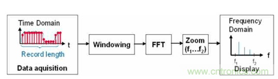 我們總想著對采下來的數據做更多的處理,示波器更準確的理解,它更像一個波形分析儀正是工程師的不滿足,才有我們不斷追求推動極限的動力,因為我們經常低估我們的潛力,極限到底在哪? 到底是誰最先把FFT(快速傅里葉變換)用在數字示波器里邊呢,說法很多。好像突然間,大家在示波器上都發現有FFT 功能了,而且都是標準配置,雖然都有這個功能,但是做成的結果千差萬別,速度和指標也都各不相同,任何事情開始階段都相同,都先追求有,再談差異化。況且示波器本身是個定性的工具,誰又在乎示波器在頻域上的指標精度呢,除了我們可愛的研發工程師。情況在變化,很多時候用戶希望通過一個儀器來解決所有問題,因為說實話,很多工程師沒有條件在桌上擺上電位計,頻譜儀,示波器,矢網。多數情況,示波器把采集下來的時域數據樣本,進行軟件fft 運算,變成頻域的樣本,再通過數據重組,把頻域的樣本顯示出來。