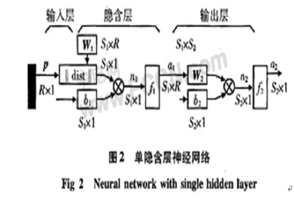 其中,p為輸入矢量,R為輸入矢量維數,S1為隱含層神經元個數,S2為輸出層神經元個數,W1為隱含層神經元權值矩陣,W2為輸出層權值矩陣,b1為隱含層神經元閥值,b2為隱含層神經元閥值,n1為隱含層輸入節點,n2為輸出層節點。f1為S型函數,f2為purelin型函數。神經網絡算法是用于前饋多層網絡的學習算法。如果輸出不能得到期望的輸出,則轉入后向傳播。通過誤差的后向傳播調整各層之間的權系數。反復輸入樣本序列,直至權系數不在改變為止,輸出誤差在規定的范圍之內。算法采用如下改進:1)采用模擬退火法以克服局部最小;2)用奇函數作激勵函數和傳播過程中采用新誤差傳播因子完善該算法收斂性問題。