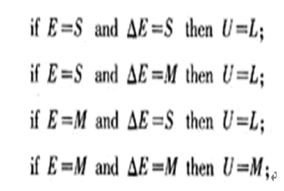 橫行元素表示E的模糊量,豎行表示△E的模糊量,兩者交叉為控制量U的模糊量。根據表中數據,可知共有3×3種推理語句,采用推理法將條件語句表簡化得出以下4條語句: