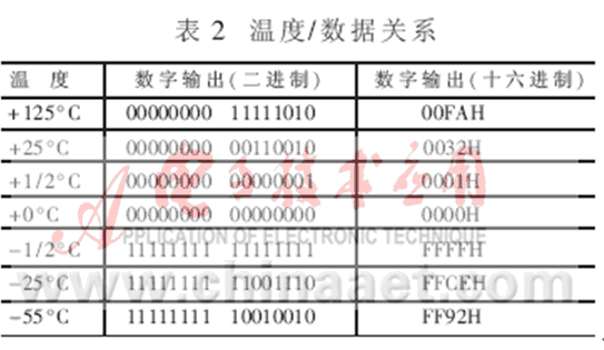 在實際應用中,測量溫度往往在0°C以上,此時可只取16位二進制溫度輸出的低8位,即1個字節(jié),這樣將使計算和編程工作更為便利。