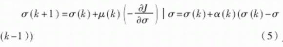 其中,μ(k)為學習率,α(k)為動量因子,也稱為遺忘因子,又稱動量項或阻尼項。將其稱為遺忘因子可從對于新舊信息的學習與遺忘的角度來理解;稱為動量項或阻尼項是因為在網絡的學習訓練中,此項相當于阻尼力,當訓練誤差迅速增大時,它使網絡發(fā)散得越來越慢。總之,它使網絡的變化趨于穩(wěn)定,有利于網絡的收斂。