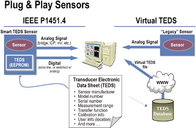 IEEE1451.3啟動處在多分支網絡中的傳感器的運行;于2003年通過的IEEE P1451.4規(guī)定與數字傳感器相關的數據(像傳感器的類別、型號、操作參數以及位置等)必須能夠以電子數據表的格式從整合在傳感器中的EEPROM(電可擦除只讀存儲器)存儲器中讀取,這種數據表被稱為變換器電子數據表(TEDS-Transducer Electronic Data Sheet)。IEEE P1451.4標準極大地簡化了傳感器的布線以及更換故障傳感器的問題。它同時也免除了傳感器在設置和校準方面的人工干預,這種干預即費時又易出錯。這樣傳感器就成了即插即用的裝置。在國家儀器網站(National Instruments’ web site)中有一個有效TEDS的數據庫,它包括了可以在IEEE P1451網絡中使用的各種老式的或沒有EEPROM的傳感器的專門資料。IEEE 1451.5標準仍在審核階段,它規(guī)定的是將TEDS連接到無線網絡中的必要條件,如與802.11、藍牙或ZigBee等的連接。最近又提出了IEEE 1451.6標準議案,它定義TEDS和CAN總線的接口。