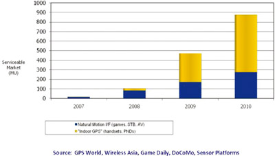 市場調研機構iSuppli認為,移動傳感器(motion sensors)將代替?zhèn)鹘y(tǒng)的傳感器成為MEMS市場的主要推動力,至少在2012年之前會是這樣。尤其是加速計(accelerometer),它在便攜式消費電器中將被用來啟動一系列高級界面功能。傳感器在消費電器中的應用正在迅速飆升,像用于游戲、筆記本電腦和數碼相機中的移動傳感器就是實例。雖然以傳感器為基礎的微型機電系統(tǒng)(MEMS-microelectromechanical systems)的價格已經在迅速下降,它們還是太昂貴而不能被用在一些對價格敏感的消費產品中。