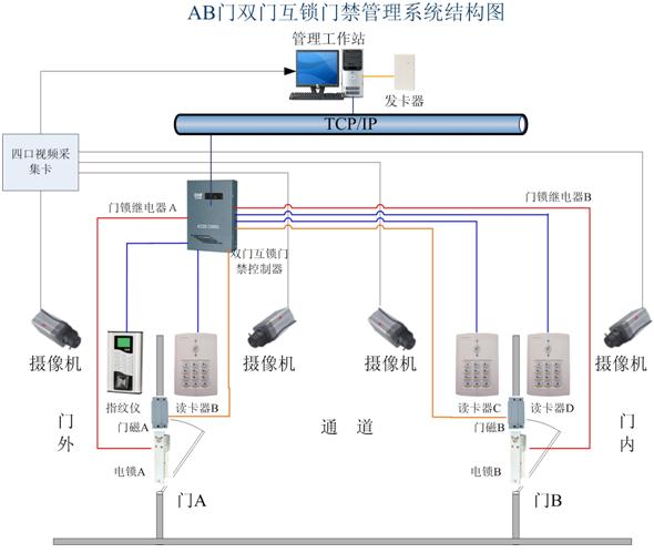 智能卡AB門雙門互鎖門禁是智能門禁系統(tǒng)的一個非常巧妙的應(yīng)用,在一個需要嚴格控制人員進出區(qū)域外的通道上安裝雙門互鎖門禁,當(dāng)人員通行時,經(jīng)過第一道門之后必須關(guān)好該門才能開啟第二道門,這樣有效的隔離通道內(nèi)外兩側(cè)的空間,防止了犯罪分子尾隨進入安全區(qū)域等情況的發(fā)生。該雙門互鎖系統(tǒng)還可配合閉路監(jiān)控設(shè)備實現(xiàn)中心對刷卡人員的監(jiān)控,還可以安裝指紋儀實現(xiàn)更高級的指紋AB門雙門互鎖門禁。