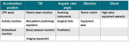 通過一個功耗極低的緊湊器件來精確檢測和測量運動的能力,幾乎對任何涉及到運動的應用都是有價值的,甚至對那些運動要求不是很關鍵的應用也是有價值的。表1按運動類型列出了一些基本醫療應用。需要解決更多挑戰的更高級應用將在稍后討論。