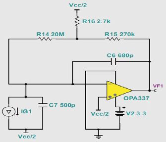 圖3 用于信號調節的電荷放大器
