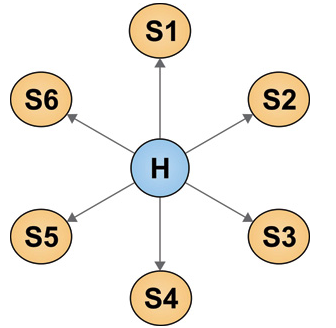 A) 星狀網絡:如圖4所示,星狀網絡由一個點對多點無線連接組成,其一臺單主機以雙向或者單向方式連接至幾個節點。如果低功耗和低軟件開銷為關鍵參數,則這種拓撲結構非常值得關注。其存在的局限性是有效通信距離,因為每個節點都要在主機通信距離范圍以內。有幾種標準可以用于實現這種拓撲結構。藍牙、IEEE 802.15.4或者專有系統為使用最為廣泛的一些標準。注意,由于一些藍牙協議的局限性,藍牙平臺并未獲得廣泛的接受。