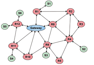 圖5 WSN應用中所使用的網狀網絡拓撲