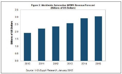 據IHS iSuppli公司的MEMS研究報告,2011年汽車MEMS傳感器與激勵器的表現比預期中要好很多,大大超出期望值,盡管受到日本大地震泰國洪災等不利因素影響。