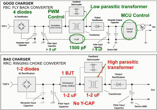 設計用于配合特定電話工作的OEM廠商的充電器具有較嚴格的噪聲規格,同時,在充電電路中廣泛采用USB連接器為配件市場創造了巨大的機會。為了在其中進行競爭,配件廠商充分地降低充電器成本。采用低成本電子器件的充電器給手機充電將注入很多噪聲到觸摸屏,而導致其很可能無法使用。