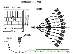 菲涅耳透鏡(圖3)根據(jù)菲涅耳原理制成,把紅外光線分成可見(jiàn)區(qū)和盲區(qū),同時(shí)又有聚焦的作用,使熱釋電人體紅外傳感器 (PIR) 靈敏度大大增加。菲涅耳透鏡折射式和反射式兩種形式,其作用一是聚焦作用,將熱釋的紅外信號(hào)折射(反射)在PIR上;二是將檢測(cè)區(qū)內(nèi)分為若干個(gè)明區(qū)和暗區(qū),使進(jìn)入檢測(cè)區(qū)的移動(dòng)物體能以溫度變化的形式在PIR上產(chǎn)生變化熱釋紅外信號(hào),這樣PIR就能產(chǎn)生變化電信號(hào)。