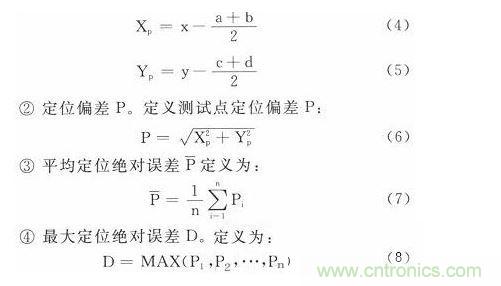 ①偏差Xp、Yp。假設(shè)在物理平臺上測試點的網(wǎng)格坐標(biāo)取值范圍為X∈[a,b],Y∈[c,d](a、b、c、d為非負(fù)整數(shù),b-a=d-c=1,單位為cm)通過軟件求得的坐標(biāo)為(x,y),定義偏差Xp、Yp: