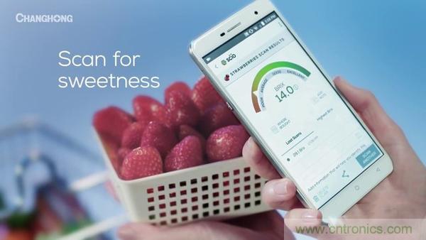 而在健康領域,長虹此前也發(fā)布過全球首款分子識別手機——長虹H2。通過分子識別手機,用戶能快速檢測果蔬糖分、水分、藥品真?zhèn)危约捌つw年齡,酒水類等物質。
