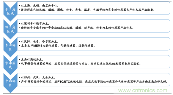 國內(nèi)傳感器企業(yè)的主要布局區(qū)域