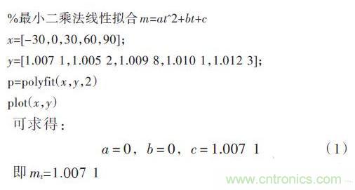 由于按照最小二乘法的基本步驟進行擬合的計算量比較大,所以本文采用Matlab進行數據處理,這樣不但可以減少復雜的計算過程,而且還可以保證較高的計算精度。