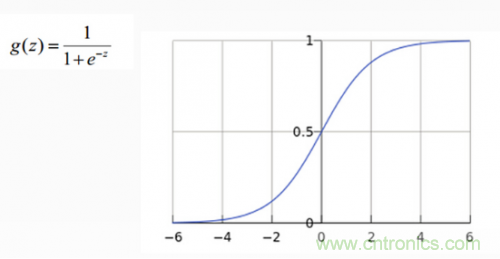 從上圖示例可見,雖然輸入照片是貓,但得分上屬于狗的得分值437.9最高,但究竟比貓和船高多少呢?很難衡量!如果我們把得分值轉化為0-100的百分比概率,這就方便度量了。這里我們可以使用sigmoid函數,如下圖所示: