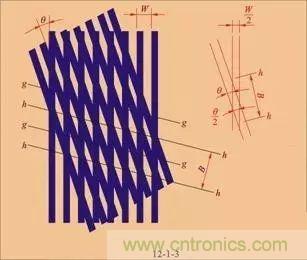 將主光柵與標(biāo)尺光柵重疊放置,兩者之間保持很小的間隙,并使兩塊光柵的刻線之間有一個微小的夾角θ,如圖所示。