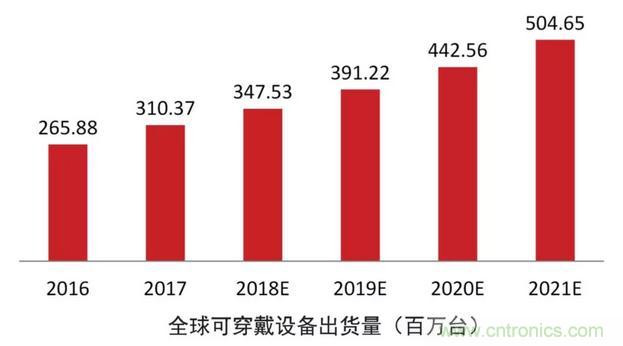 各類可穿戴設(shè)備市場的預(yù)測示意圖