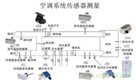 【導讀】以下介紹暖通空調(diào)中,完善、全面的空調(diào)送風系統(tǒng)傳感器應用原理圖例,以及供熱/制冷系統(tǒng)的傳感測量原理圖。